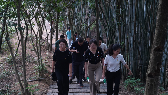 随后,党员同志们前往长岭国家登山健身步道,实地调研广州乡村风景道建设情况。借鉴蓝岭公路、环太湖公路等国家风景道、最美农村路带动沿线发展的国内外先进经验,广州正在构建串联美丽乡村、产业小镇、生态景观和文化遗址的千里乡村风景道,并衔接沿线绿道、碧道、登山徒步道等慢行系统,多维度展现“千里乡韵”漫游场景,打造具有广州独特魅力的“新名片”。徒步前行,党员们沉浸于自然之美,也探讨起乡村风景道的重要意义和推进建议,纷纷表示乡村风景道是立足广州云山连珠水的自然禀赋,发现并重塑乡村价值,推动“百千万工程”和绿美广州建设落地见效的有力抓手,也是发展成果惠及市民群众的生动实践。