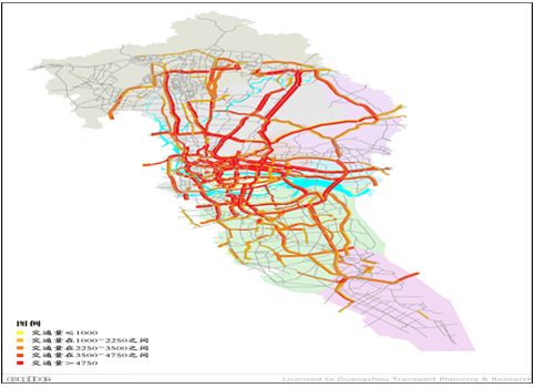 宏观方面,着眼系统总体特征的描述,应用于广州交通发展战略规划、综合交通规划、轨道交通网络规划等重大研究项目。