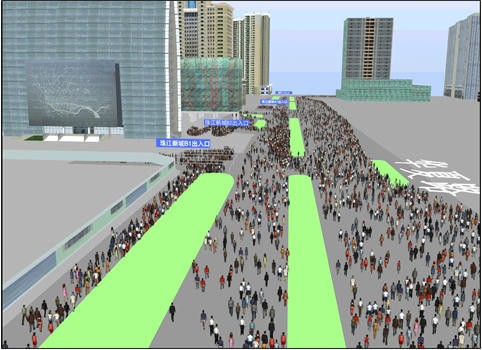 微观方面,更注重每辆车、每个人具体的行为特征,通过提取和叠加广州地区特定的人、车行为特征精细化反映微观交通运作,并通过二维及三维动画更加清晰、明了显示。
