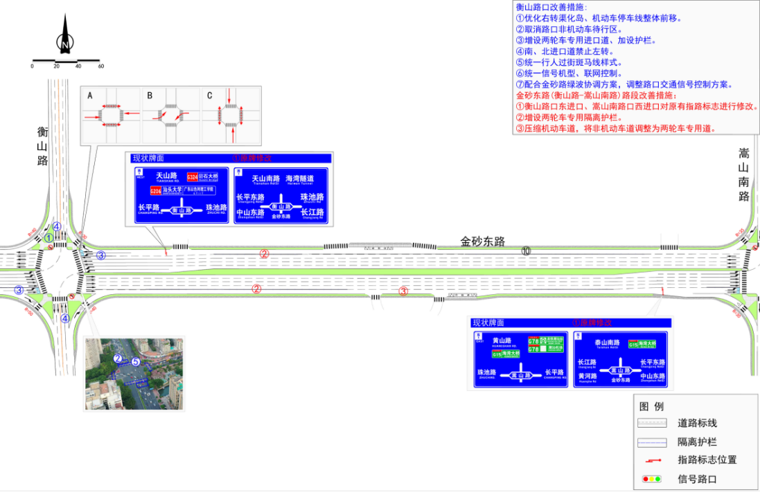 通过分析示范道路的现状及存在问题,提出“道路挖潜扩容”、“管控智能高效”、“设施科学规范”、“指引清晰美观”的交通改善策略,对五条示范道路进行详细规划设计,制定实施计划、提出保障措施。增设隔离护栏和增设非机动车道等方案实施后,有效改善了交通秩序,保障了交通安全,为后续在汕头市范围内各等级的道路推广应用提供了样板。