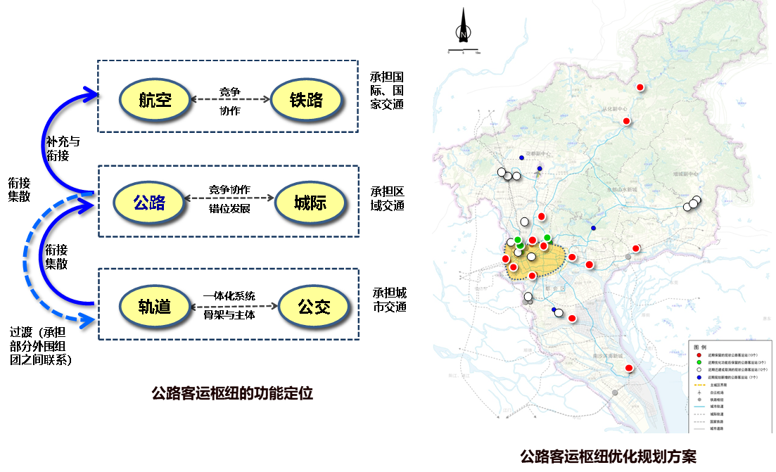 为适应国家高速铁路、珠三角城际铁路和城市轨道快速发展,广州构建“枢纽城市”,提出编制市内长途汽车客运站迁建规划。该规划对现状28个公路客运站的发展历程、用地条件、空间布局、运输能力及客流分布等进行深入剖析,多措共举优化现状客运站布局,将枢纽布局由“小而散”向“集约化”方向发展,按照“内减外增、优化布局”原则新增公路客运站。项目创新采用“客流向性”分析方法,明确公路客运站与城市空间布局的关系,首次明确了公路客运枢纽在综合交通体系中的定位,提出“环带+多心”公路客运枢纽布局模式。规划成果提出的布局方案纳入到《广州城市总体规划》,指导了新增公路客运站的选址和建设,实现长途客运交通向外有效疏解,解决了公路客运站多年难以搬迁的“老大难”问题。