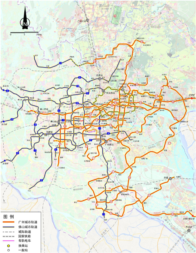 从“边界衔接”向“一体融合”,推动广佛同城向更广、更深发展。2015年开展首轮广佛轨道衔接规划,首创相邻城市轨道交通一体化发展模式,规划形成“9+2”共计11条轨道衔接通道,成果有效指导了两市近期建设线路实施,已建成3条跨市城市轨道,包括广佛线、佛山2号线东延和广州7号线西延。2018年结合两市轨道线网规划修编,按照“中心直达、枢纽共享、边界融合策略”理念,规划跨市轨道18条,实现广佛核心区30分钟互达。