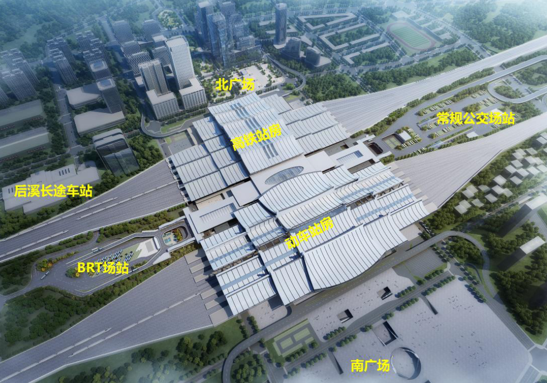 通过解决铁路与轨道、BRT、常规公交、出租车、大巴、小汽车等各种运输方式在基础设施、运输服务等方面的有机衔接和融合发展,更好的服务客运“零换乘”,构建多层级、一体化的综合交通枢纽。结合厦门北站枢纽并站后既有车站与新建车站之间70m间距的相对关系,创新性地提出“中间布局公共交通设施、南北布局个体化交通”的衔接设施布局方案。支撑厦门北站建设成为公交绝对优先、人车严格分离、换乘舒适便捷的绿色交通枢纽典范。