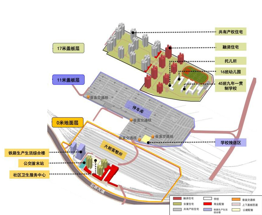 创新性地利用新建铁路站场用地实施土地综合开发,采取从地面到上盖多层次、多空间一体化设计,实现土地高效集约利用。规划提出包括道路交通、公共交通、慢行交通在内的多项交通优化方案。道路优化方面,规划新增永石路跨线桥、大朗中路跨线桥和科技大道隧道,共3条东西向跨铁通道,完善“四横三纵”的地区路网结构。内部交通方面,行人可通过自动扶梯、步行楼梯、入户电梯以及4处垂直交通核实现各层之间转换。有效支撑大朗客整所地块的综合开发,目前地块控规已顺利通过市规委会审议。