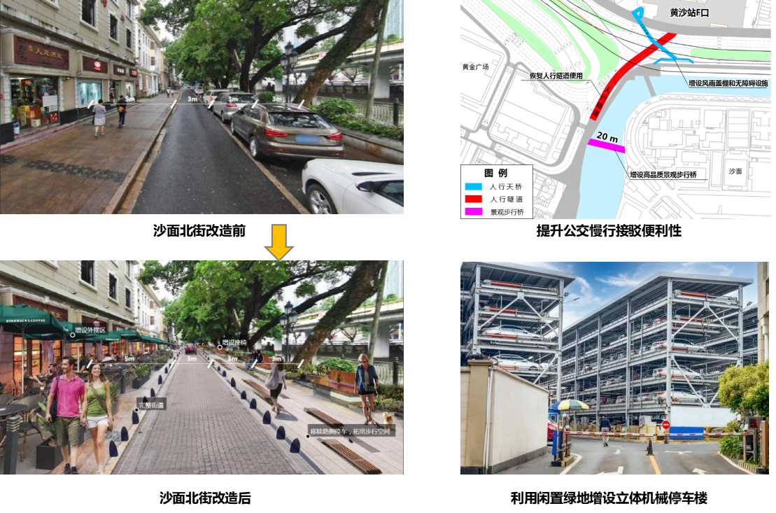 荔湾区首个历史文化街区综合性交通改善实施项目,提出“提升沙面与周边轨道及公交站点的步行衔接品质和便捷性”、“加强岛内停车场建设和管理”、“交通管理专业化、精细化”三大改善策略共13项具体措施,在仅三个月时间内完成实施沙面北街停车及街道品质改造、立体停车楼建设、岛内路边停车整治等项目,推动连接岛外步行桥工程前期工作,岛内交通环境焕然一新,助力沙面岛打造成为广州市历史文化街区优质标杆。