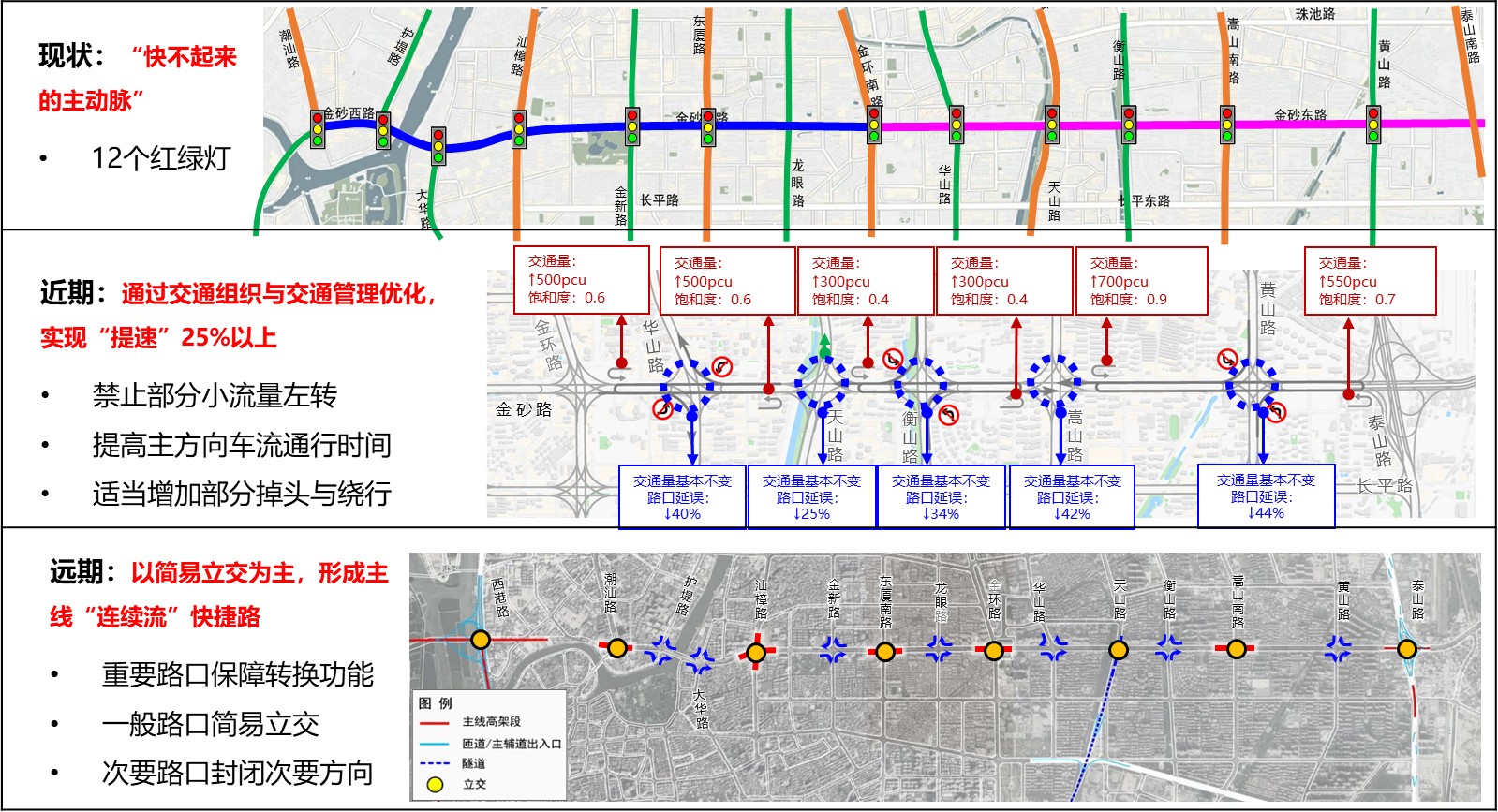 项目以“功能匹配、点线关联、建管并重、远近结合”为原则,建立了“通道-节点-路网”的一体化规划机制,以保障对外通道、过境通道和内部主要通道的交通功能为出发点,建立科学、合理的路网节点功能分级体系,采取路口精细化改造+立交化+交通管理优化等综合治理措施,实现路网节点交通转换顺畅,提升路口通行效率,规范路口交通安全与秩序,缓解交通拥堵,提升汕头市道路交通出行品质。