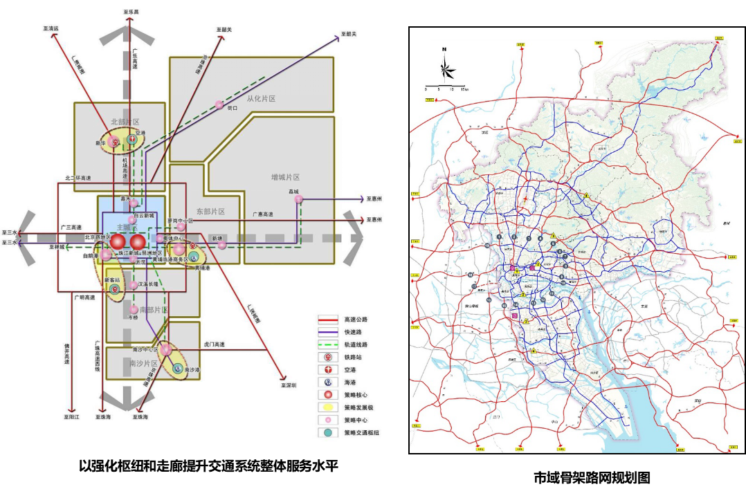“后亚运”时期,为适应国家中心城市的定位,规划基于“一体化”和“差异化”发展战略,提出了强化“交通与土地利用协调”、“公共交通优先”、“小汽车交通引导”政策,构建了以“共享、畅达、绿色、公平”为特征的综合交通体系,从区域视野和世界眼光来谋划整个广州市长远的交通发展战略。规划在国内首次突破行政界限的限制,按照“枢纽共享、道路融合、轨道衔接”的规划理念,实现了与周边城市的无缝衔接;并在国内首次运用先进的综合交通规划模型对规划方案进行“风险评估”,定量分析交通规划目标可能的实现程度,提高了综合交通规划的实操性。规划成果纳入了《广州城市总体规划(2011-2020)》,成为十年间协调城市空间和重大交通设施布局的根本依据。