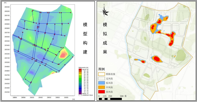 评估规划范围所在区域的洪涝风险等级,运用涵盖产汇流模型、一维管网模型、一维河网模型以及二维地表径流模型的城市洪涝水文水动力耦合模型对该区域展开模拟分析。基于评估结果,为该产业区块的规划提供了科学合理的优化建议。包括调整部分建筑物的布局,避免建设在易涝区域;优化排水管网的设计和布局,提高排水能力;设置合理的雨水调蓄设施,减轻暴雨时的排水压力等。