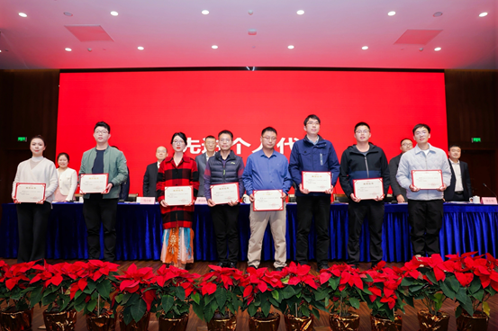丁锋总经理宣读《关于表彰2024年度先进集体、年度考核优秀等次人员和先进个人的通报》,何健副总经理宣读《关于表彰2024年度优秀项目及优秀科技成果的通报》,对获奖人员表示了祝贺,也对他们所付出的辛勤汗水、为广交研发展作出的杰出贡献表示感谢。
