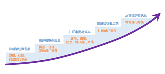 《办法》聚焦市政道路投资、建设、管理体制和实施联评联审和规范验收工作方面存在的突出问题,以实现规划统筹“一张图”、建设监管“一张网”、运行管理“一盘棋”为目标,从制度层面完善了市政道路投资建设管理体制,遵循“合理化投资、精细化设计、标准化建设、一体化管理、智慧化运营”的理念,以道路系统“一张图”为基础,着力理顺工作机制,明确了规划、投资、建设、验收移交、管理各环节的操作流程与部门职责和边界,进一步打破了传统的串联审批模式,促进多项审批流程并联审批,优化业务流程,强化部门协作,实现“一窗受理、联合评审、信息共享”;以两阶段联评联审为抓手,西安市政道路领域创新性地实施了“行政+技术”双轨联评联审工作,“行政审查”审查项目的合规性、政策性,提高行政审查效率,推动项目加快实施落地,“技术审查”审查项目的技术合理性、可行性、安全性和先进性,提高项目设计质量和精细化水平,技术支撑科学决策。