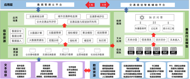 本项目聚焦AIGC (生成式人工智能)与多源地理信息融合技术,构建智慧交通规划垂直行业大模型,建立多场景交通可持续发展评估指标体系,研发AIGC驱动的智能化决策支持平台,实现从数据资源到生产力材料的转化,支持城市交通动态监测、规划编制和体检评估。