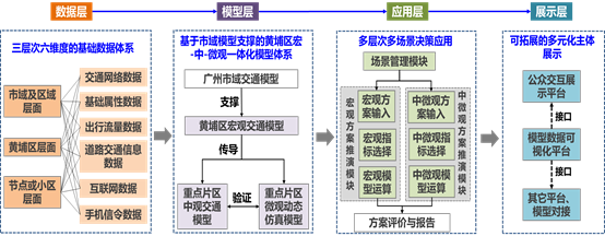 随着《粤港澳大湾区发展规划纲要》、《交通强国建设纲要》的陆续出台,黄埔区、广州开发区迎来了新的发展机遇,城市发展与交通基础设施建设进入了新的时期。在黄埔区交通设施增量建设与存量运营并存的背景下,为提升黄埔区交通决策的科学性,提高交通服务安全性、高效性和公平性,项目组构建目标导向“规划模型”与数据驱动“运行模型”相结合的宏、中、微观多层次交通治理模型,并开发数据支持与在线展示系统。